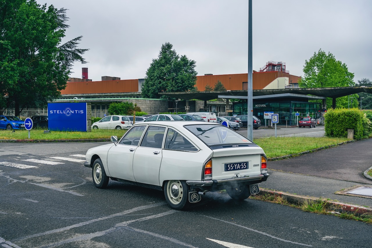 It’s now a rather sad, Stellantis-operated facility. No trace of Citroën remains. Only the oddly shaped roof of the factory is still visible, peeking out from one corner of the premises, where I managed to quickly park and take a photo.
